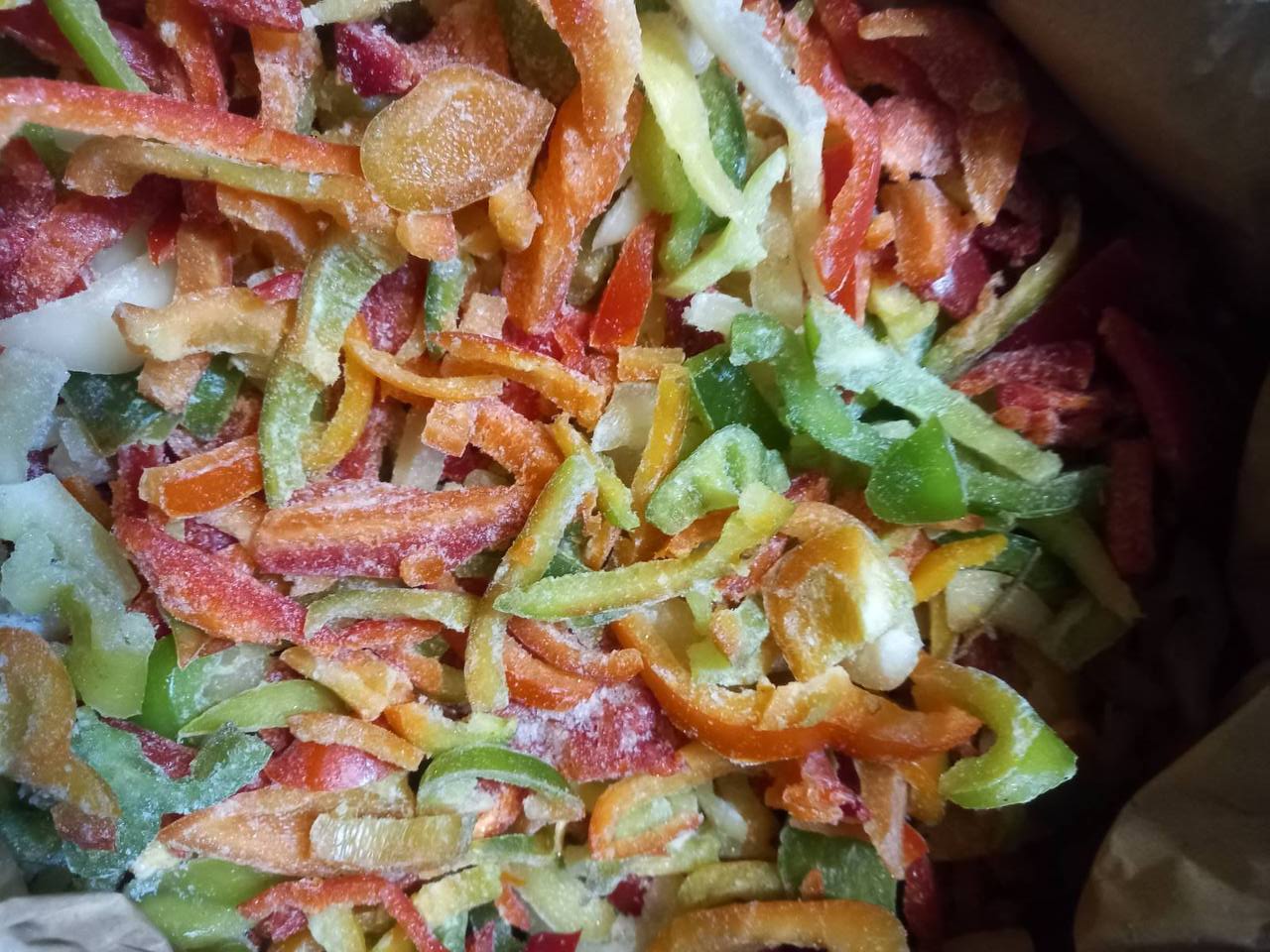IQF frozen mixed bell peppers for industrial processing and export. Colorful blend of peppers with preserved color, sweetness, and texture.